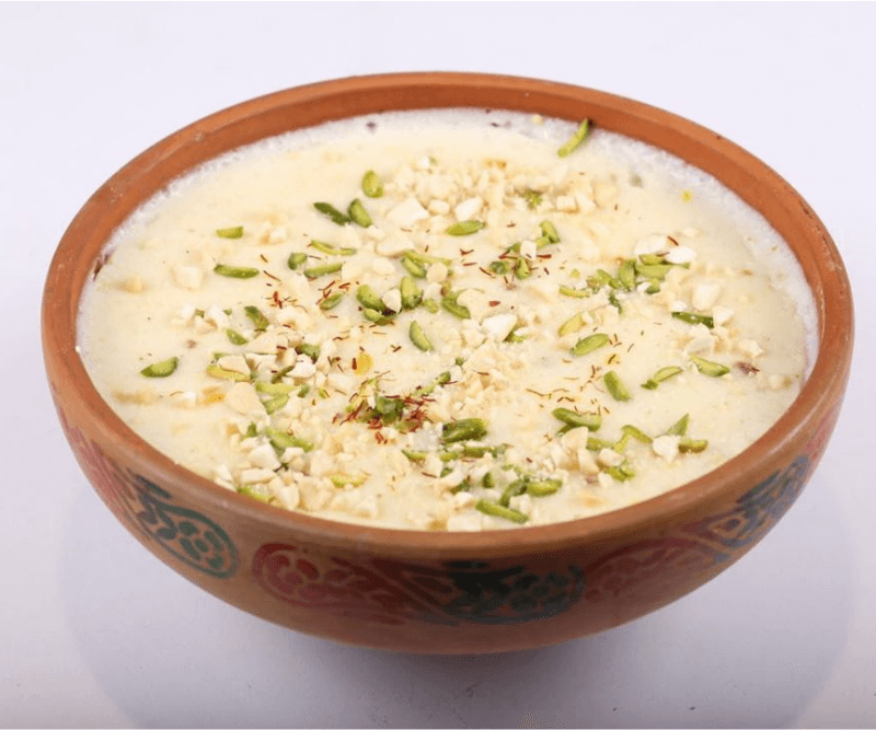 Taste the velvety texture of our Firni Full Tray. Rich milk, fragrant rice, and a touch of cardamom combine to create this classic dessert, resulting in a heavenly treat. Served with pistachio sprinkles, it is perfect for sharing with family and friends after a delicious meal.